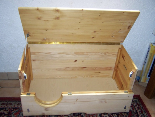 Fertige Wurfkiste mit halbierte vorne seite klapbar un zu offenen von oben alles lackiert.